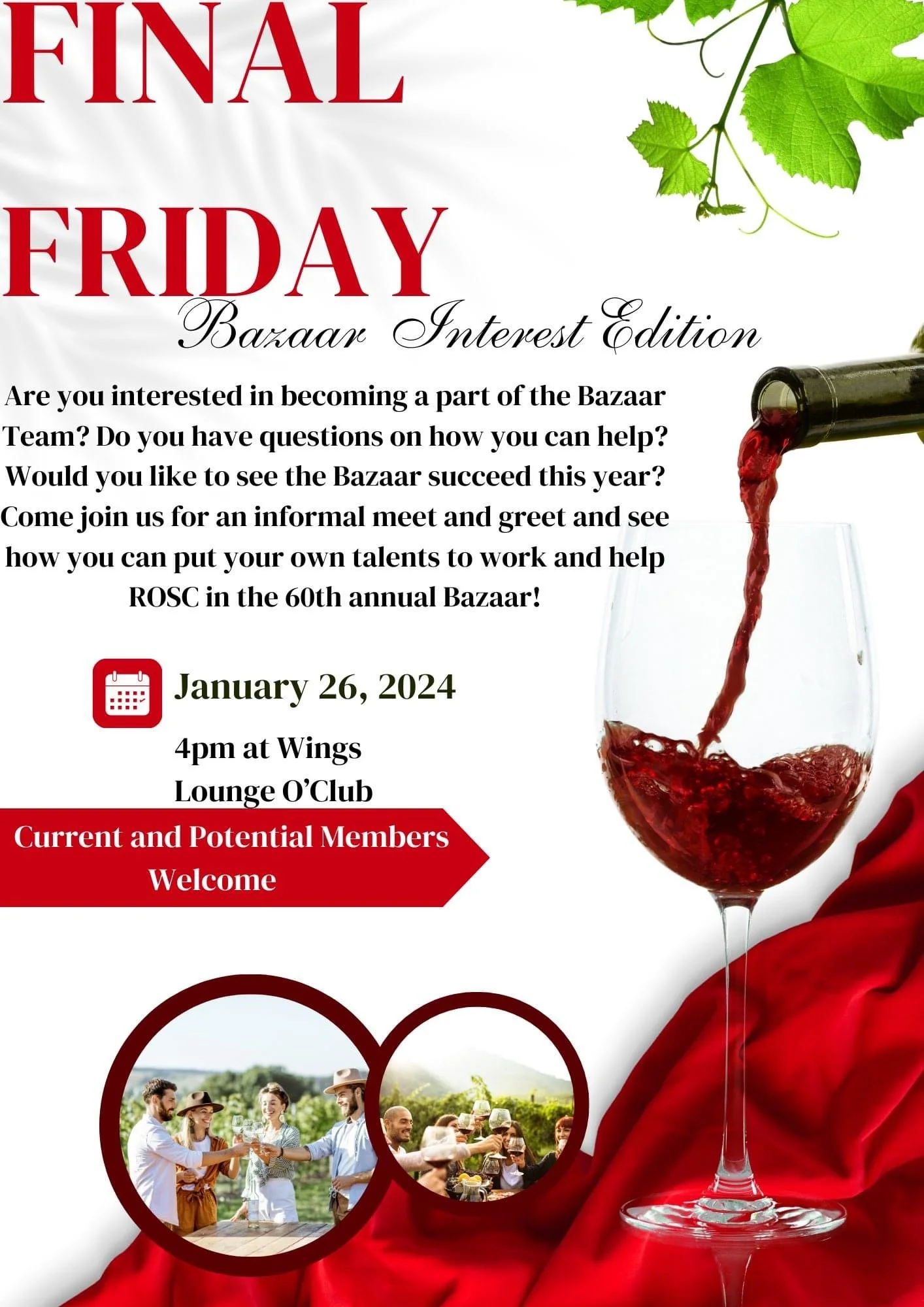 Please join us at the Wings Lounge on Friday, January 26 as part of the Officers’ Club’s Final Friday Social Hour.